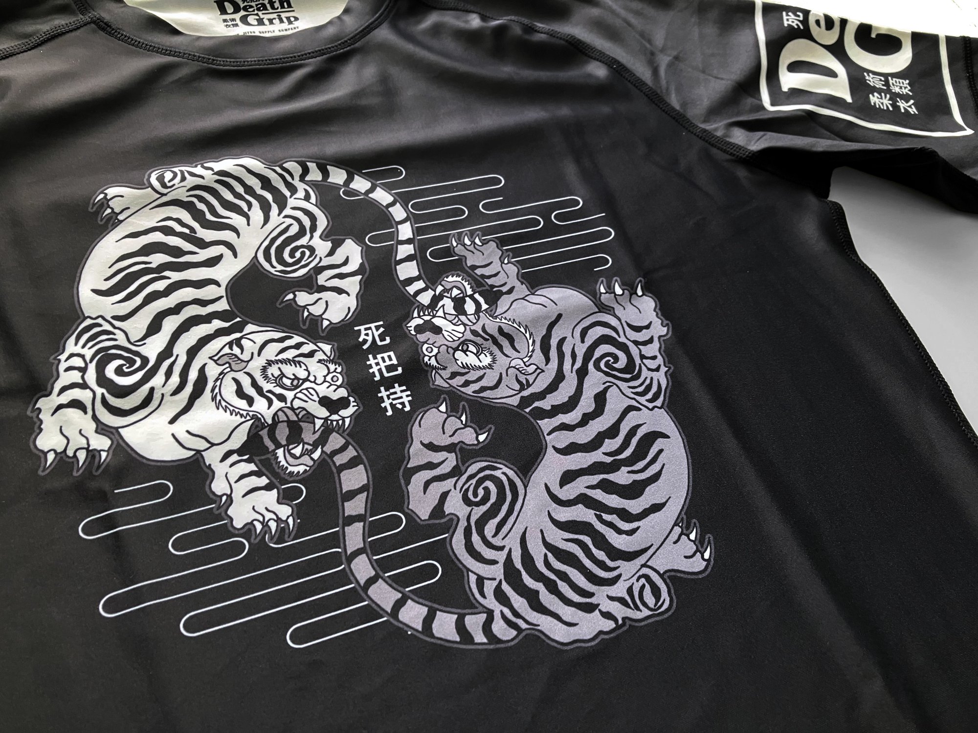 Two tigers fighting it out, looks super tough - as will you in this rashguard.