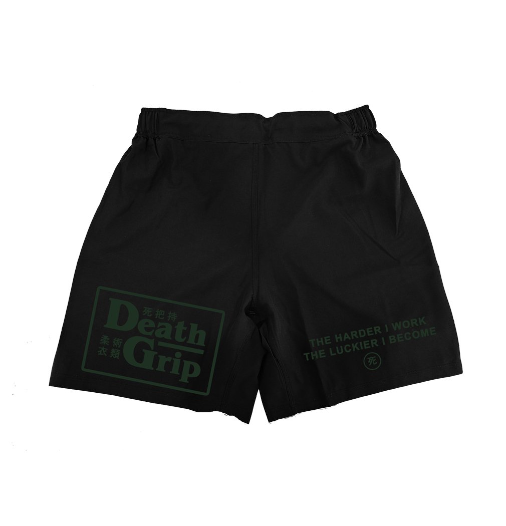 Black shorts, featuring a straight cut with elasticated waist and high quality drawstring.