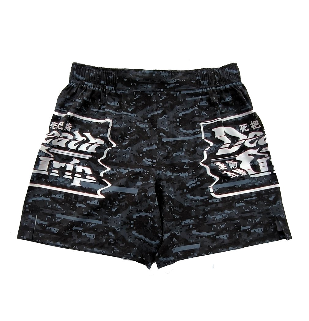 Glitch camo shorts, featuring a straight cut with elasticated waist and high quality drawstring.